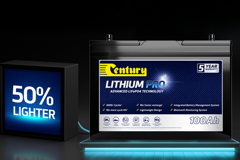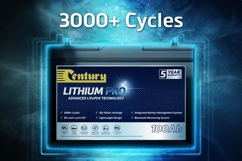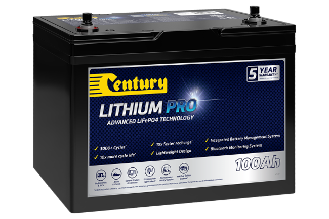 Capable of delivering over 3000 cycles#, 50% more usable energy and up to 10x faster recharging, Century Lithium Pro batteries are suitable as a drop-in replacement for standard 12V Flooded, Gel or AGM Deep Cycle batteries.^